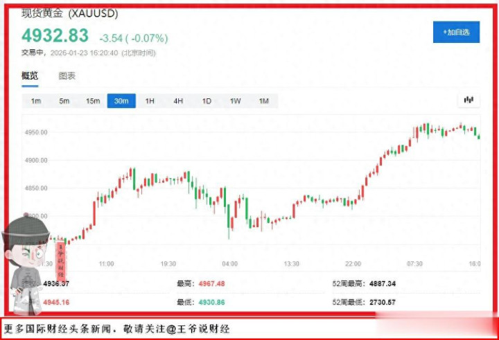 你敢信吗?就在刚刚过去的这一周,国际金价像坐上了火箭,不仅突破了4900美元,更是在1月23日亚市早盘直接摸高到4960美元!