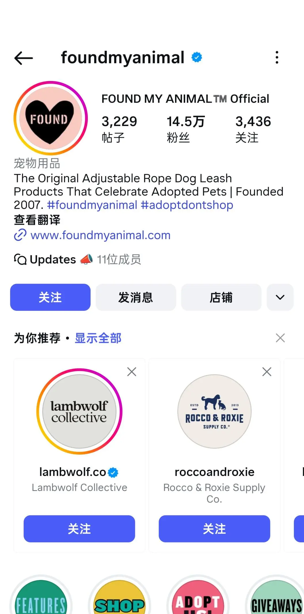 Found My Animal的营销策略以情感化内容为核心,通过社交媒体分享救助动物的故事和宠物佩戴产品的温馨画面,打造有温度的品牌形象。
